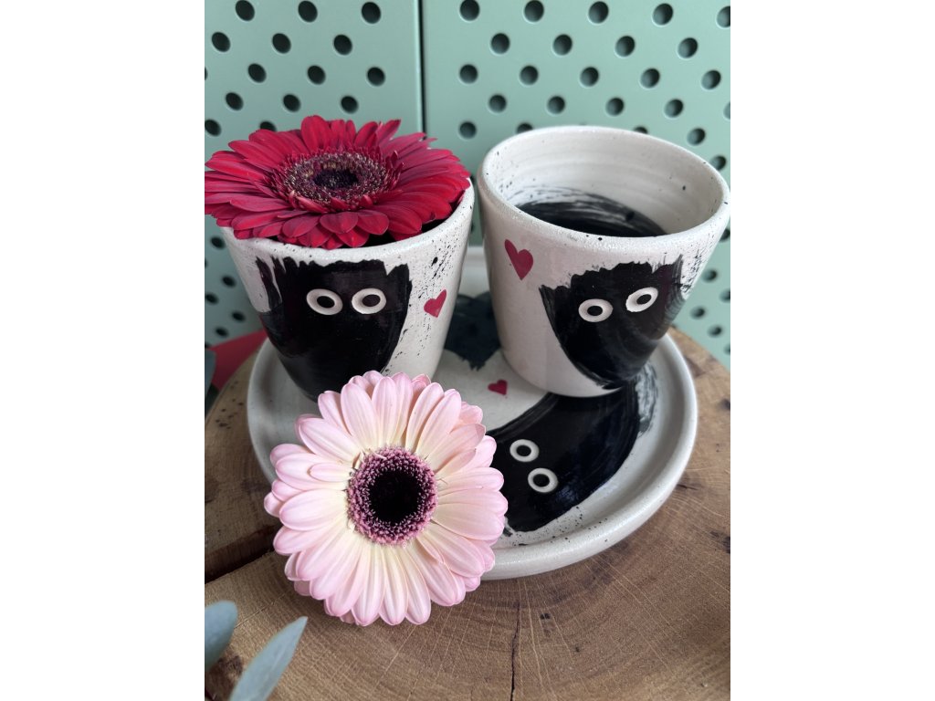 Naše keramika je čistě ruční práce, vyrobená s láskou a vášní. To znamená, že každý kousek je originální a může se mírně lišit tvarem, výškou nebo sytostí barev. To jsou ty otisky ruční práce, které dělají každý kalíšek neopakovatelným.