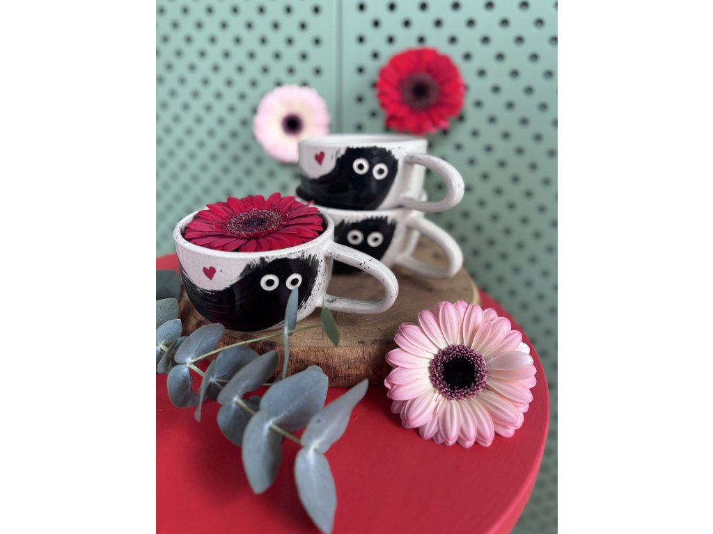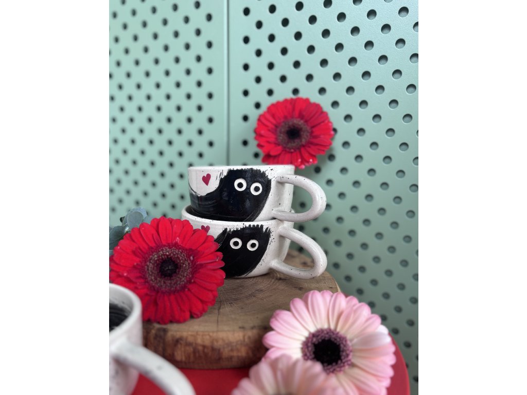Naše keramika je čistě ruční práce, vyrobená s láskou a vášní. To znamená, že každý kousek je originální a může se mírně lišit tvarem, výškou nebo sytostí barev. To jsou ty otisky ruční práce, které dělají každý kalíšek neopakovatelným.