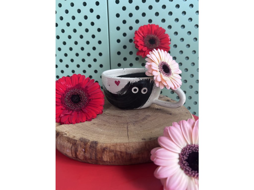 Střední hrnek s motivem Bubaaka na kávu i čaj, tentokrát v limitované sérii s malinkým srdíčkem.