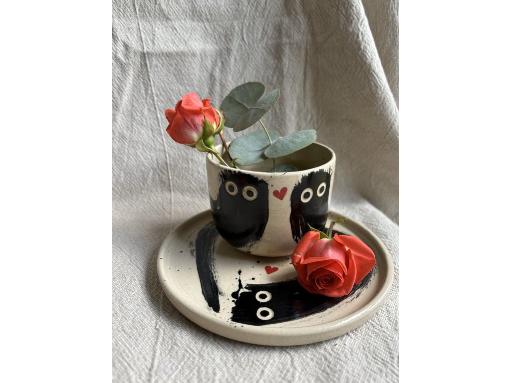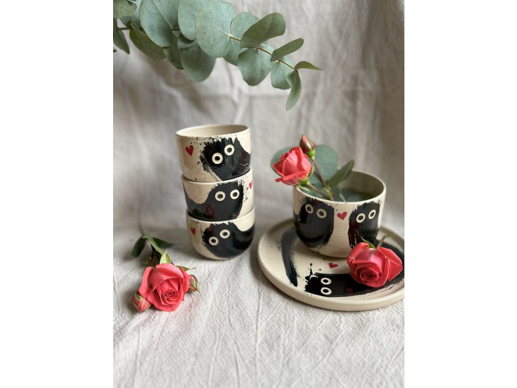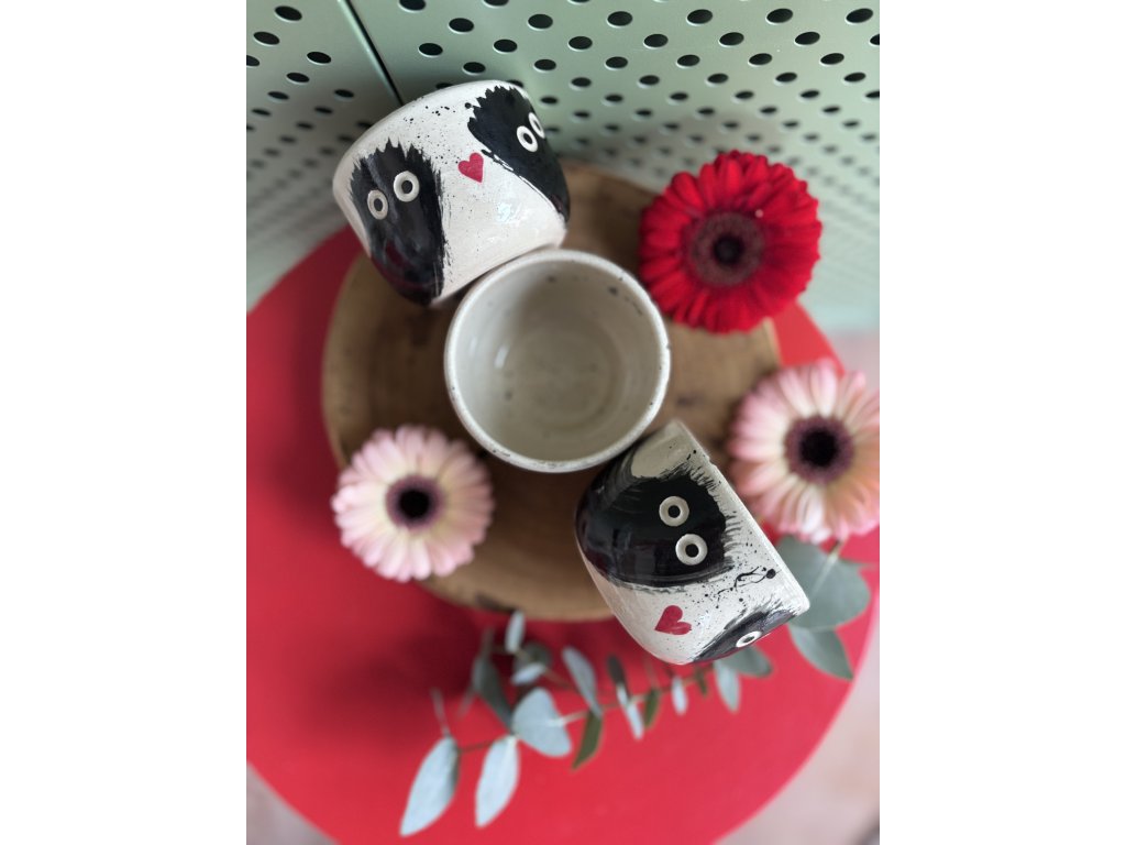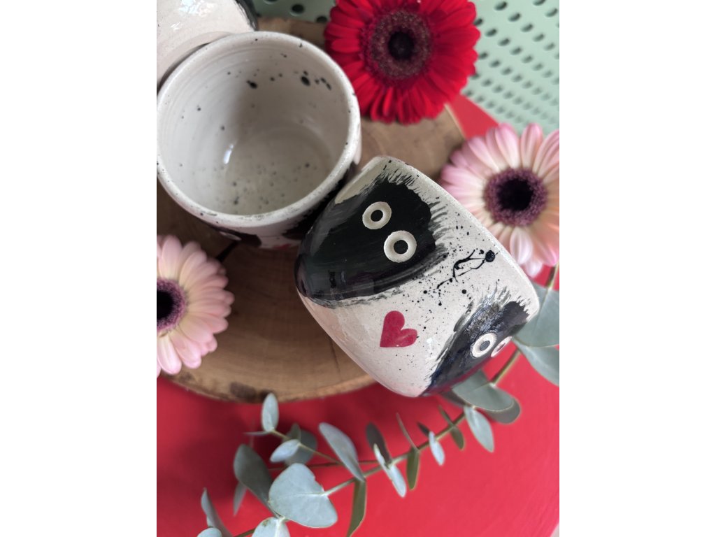 Naše keramika je čistě ruční práce, vyrobená s láskou a vášní. To znamená, že každý kousek je originální a může se mírně lišit tvarem, výškou nebo sytostí barev. To jsou ty otisky ruční práce, které dělají každý kalíšek neopakovatelným.