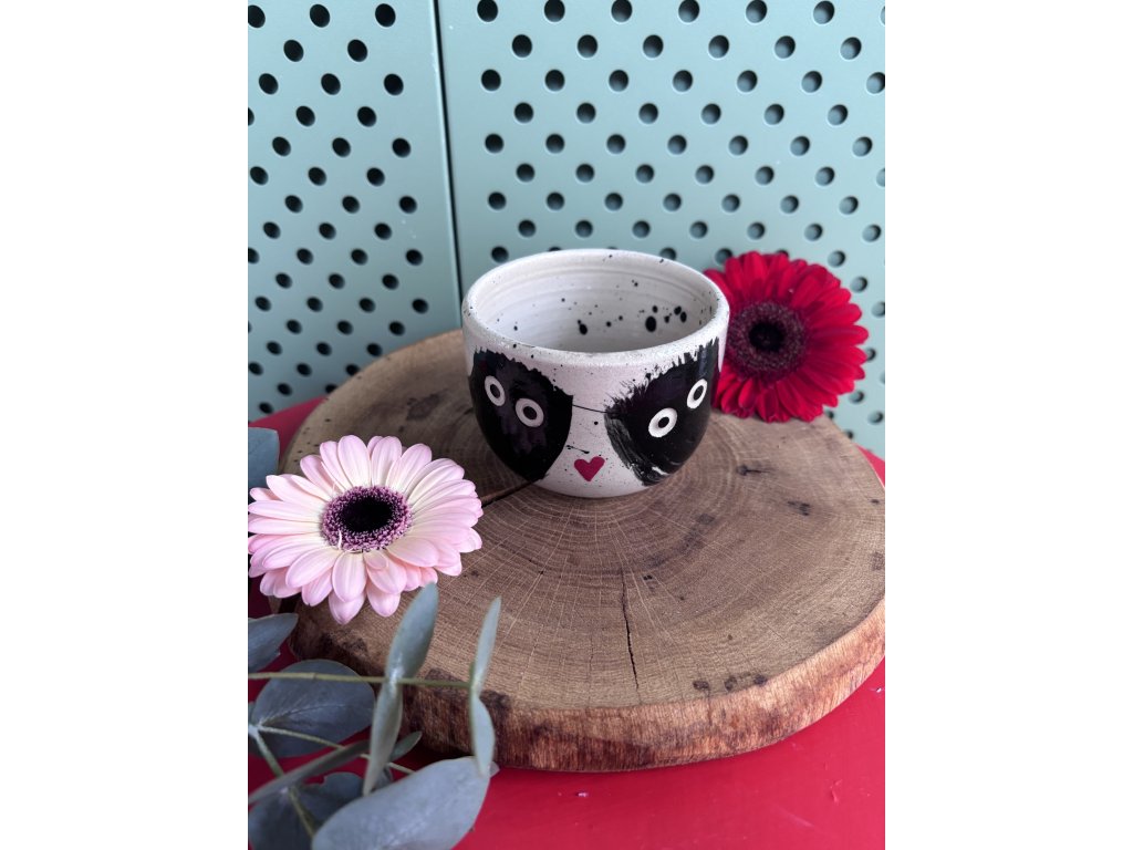 Co kromě motivu činí tento kalíšek výjimečným? Také to, že je vyroben ze světlé kameniny s trasparetní glazurou, která mu dodává odolnost i lesk. Dále prochází každý z nich testy zdravotní nezávadnosti a je určen pro styk s potravinami. Byl pálen na teplotu až 1200°C, takže ani myčka a mikrovlnka pro něj nejsou problém. (A nebojte, nemáme v úmyslu soudit ty, co si občas ohřejí i kafe! :))
