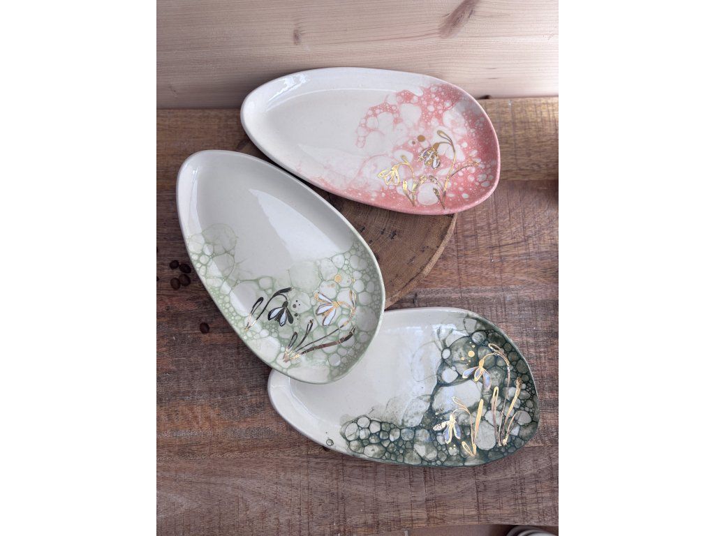 Sněženky na každém talířku rostou trochu jinak. Liší se jejich počet, rozmístění i drobné detaily- stejně jako v přírodě. Každý kus je originál.